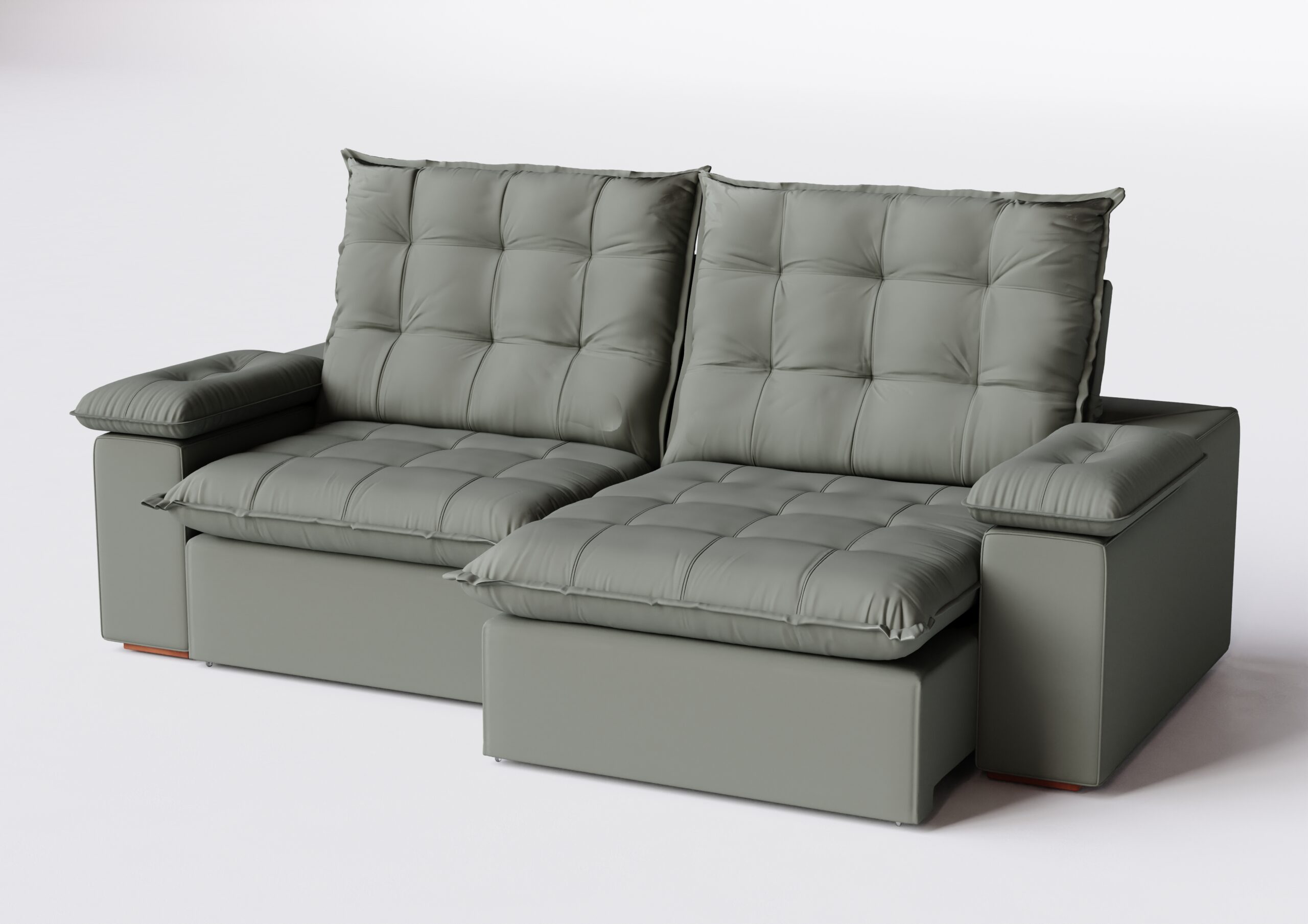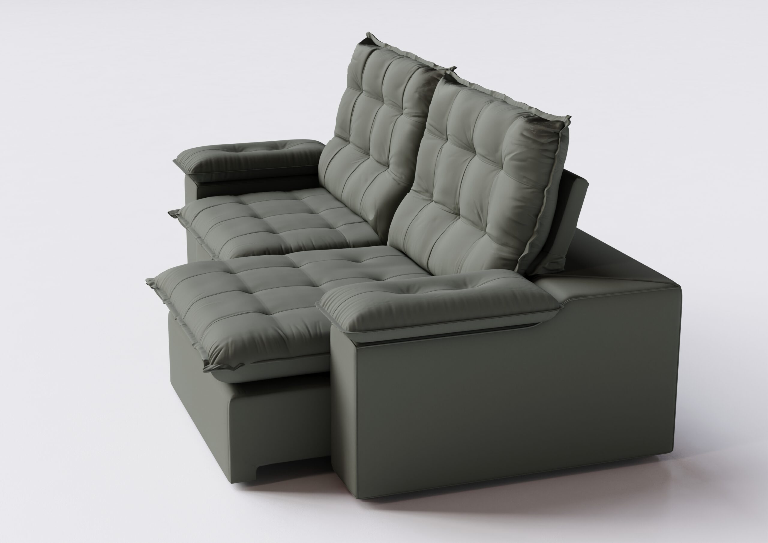 Encosto: Catraca blindada, enchimento com fibra siliconizada nas almofadas. Abertura do assento 166cm.