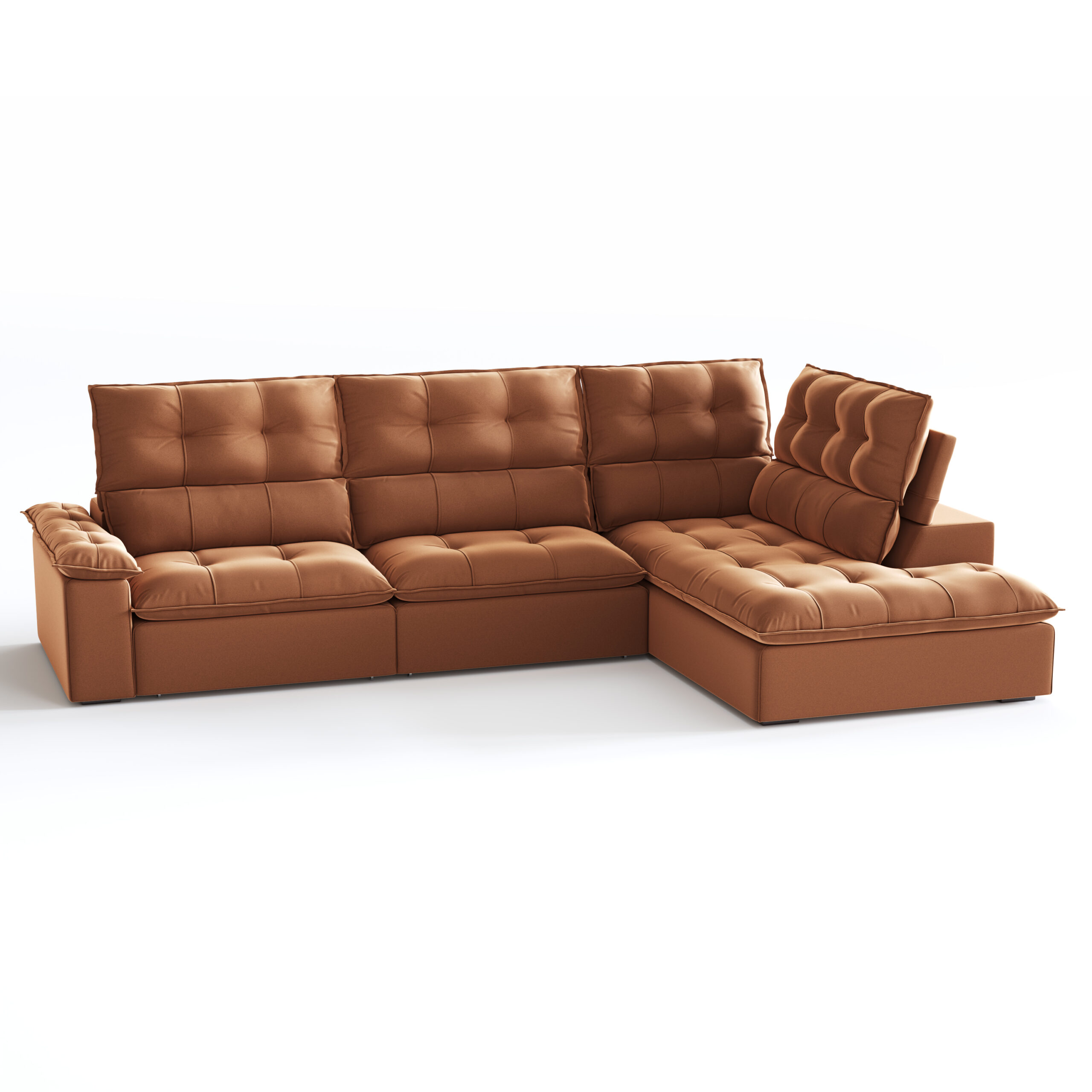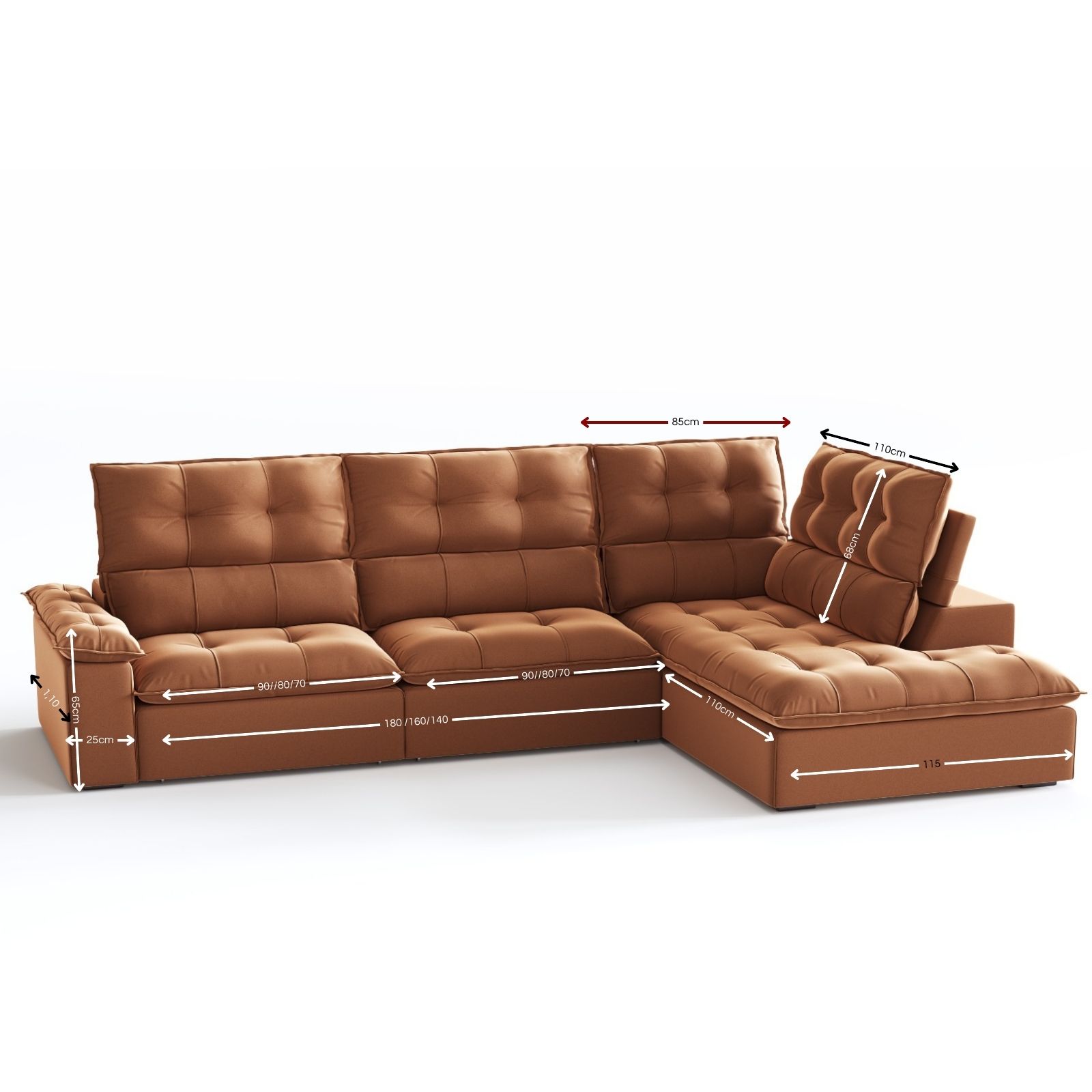 Encosto: Catraca blindada, enchimento com fibra siliconizada nas almofadas. Abertura do assento 180cm.
