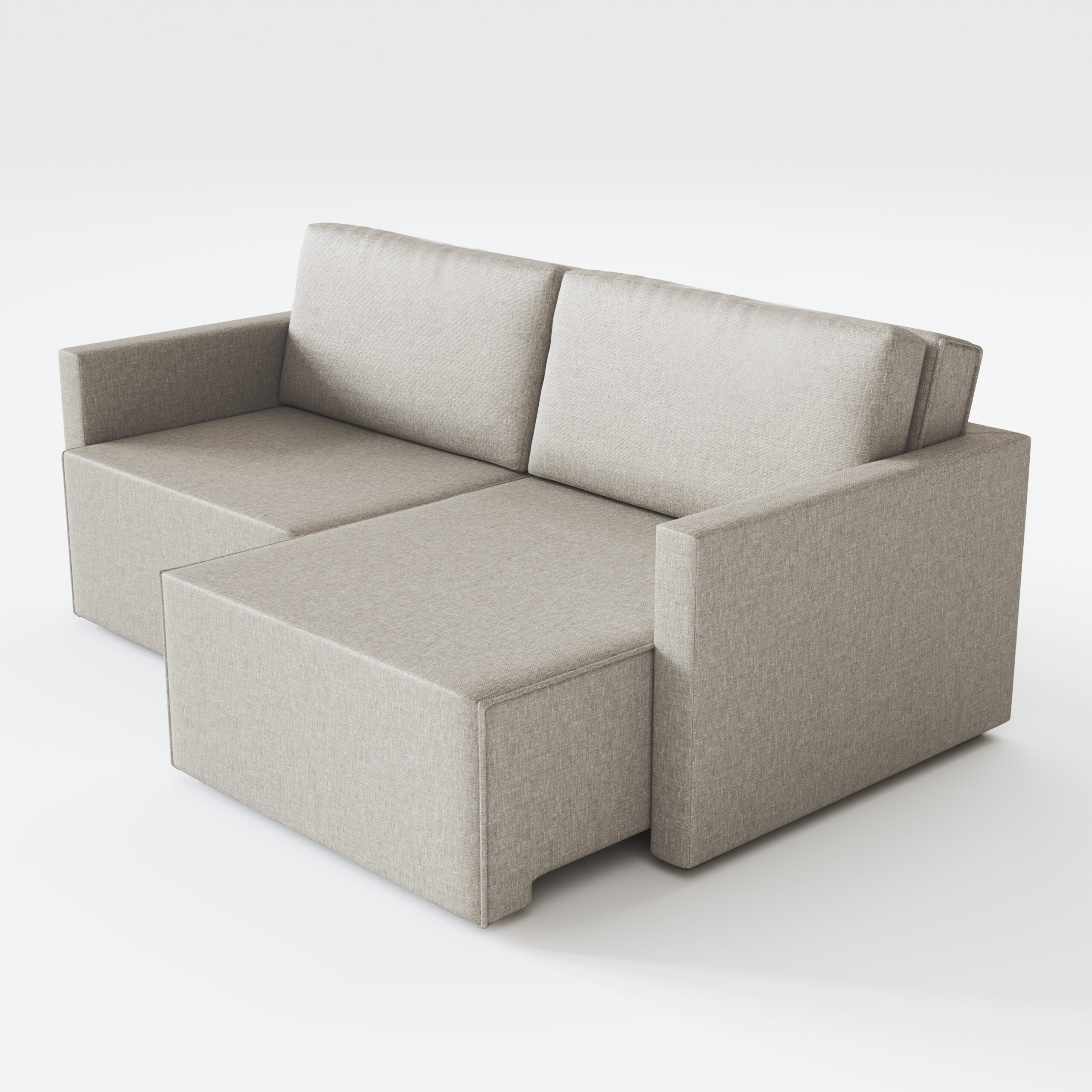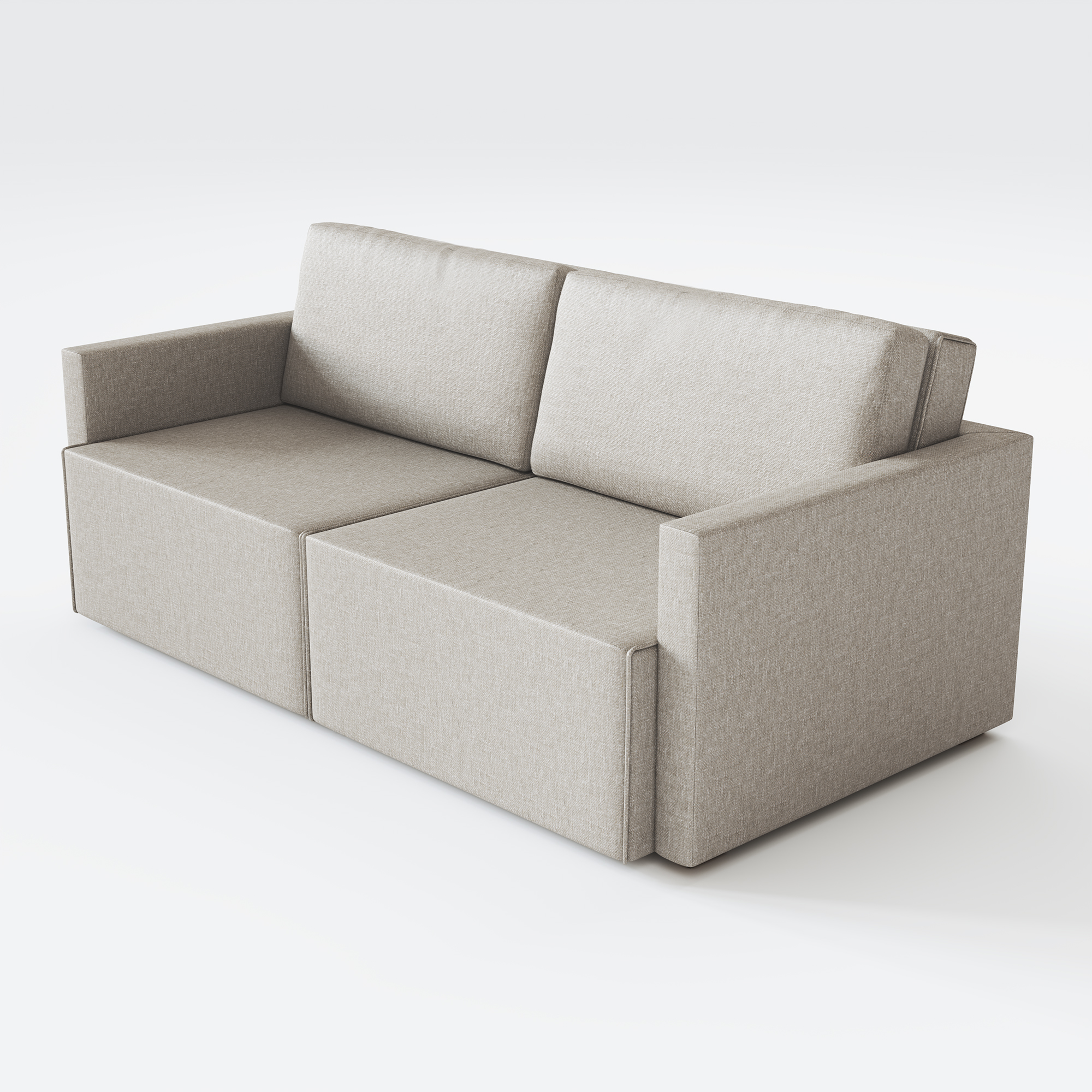 Assento: Espuma D-26, molas bonnel, rodízio de silicone e mecanismo estruturado deslizante para virar cama.